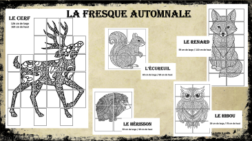 Retrouvez dans ce pack de quoi décorer les couloirs du lieu de vie pour marquer l’arrivée de l’automne. Cinq mandalas géants représentant des animaux vivant en milieu forestier :