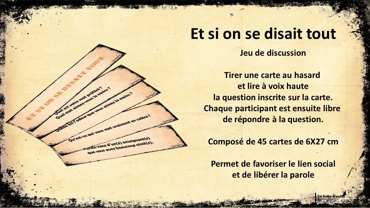 Ce support permet de créer un espace d’échange favorisant le lien social et la dynamique de groupe.