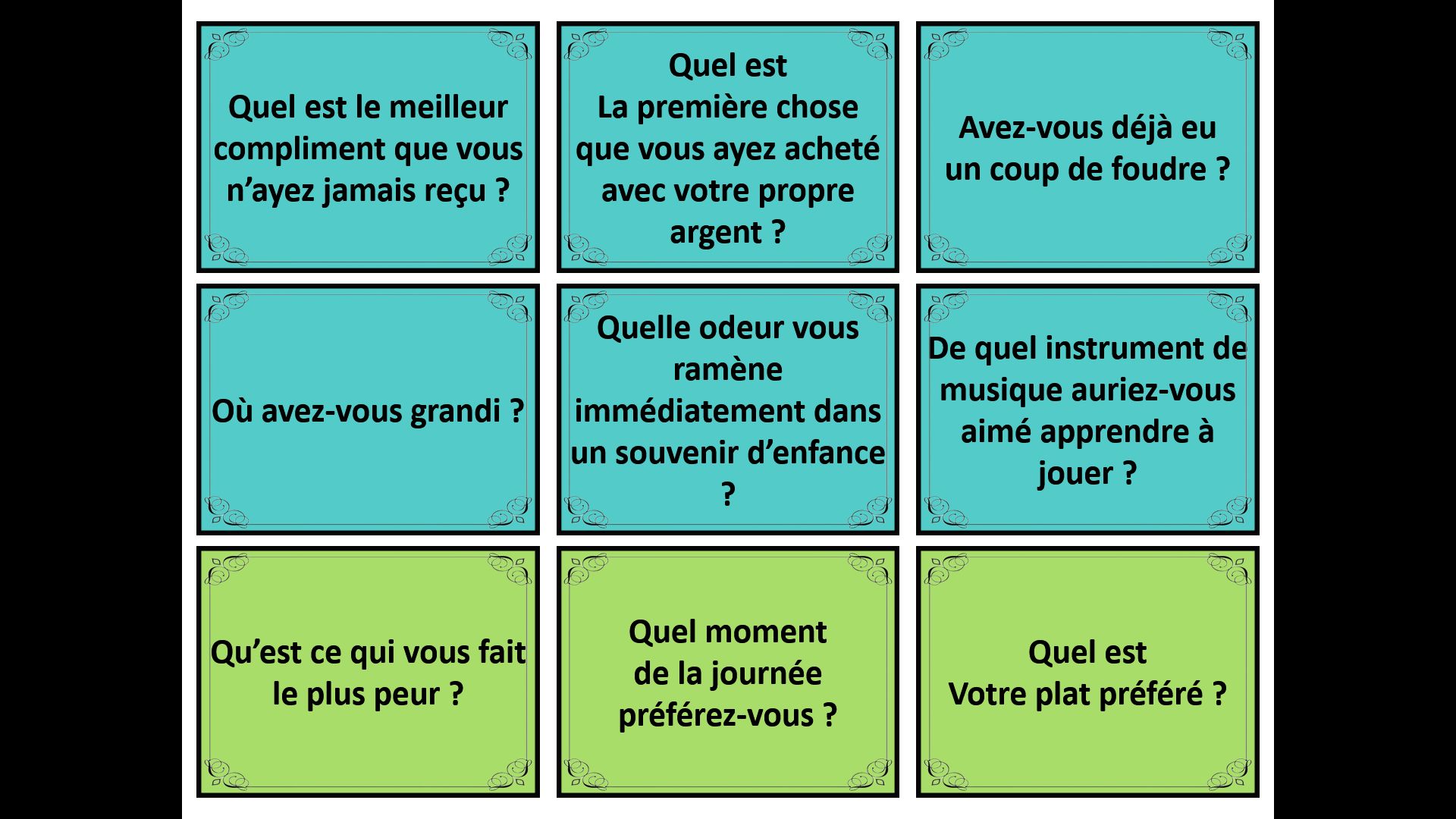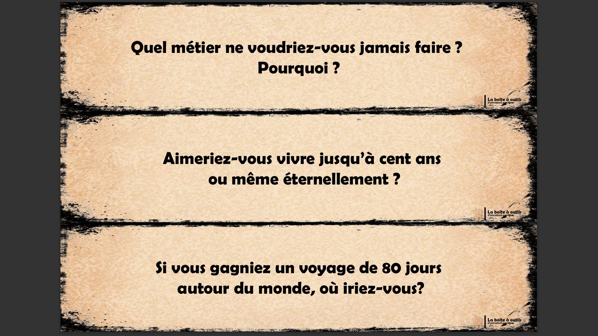J'ai utilisé les cartes sans le jeux de plateaux car je n'avais pas de dés mais juste les cartes c'était intéressant de connaitre leurs opinions passées, présents ou futurs