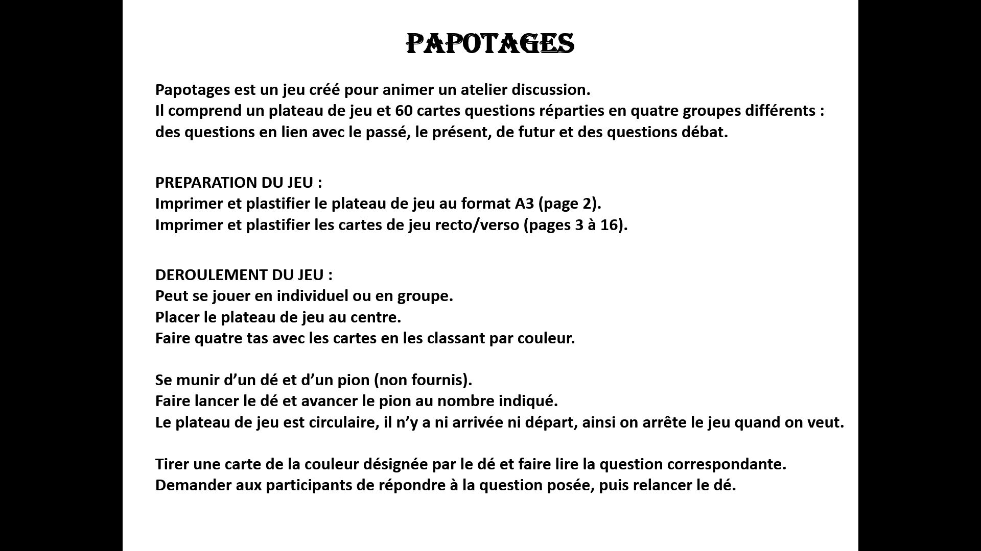 Papotages est un jeu pour animer un atelier discussion.