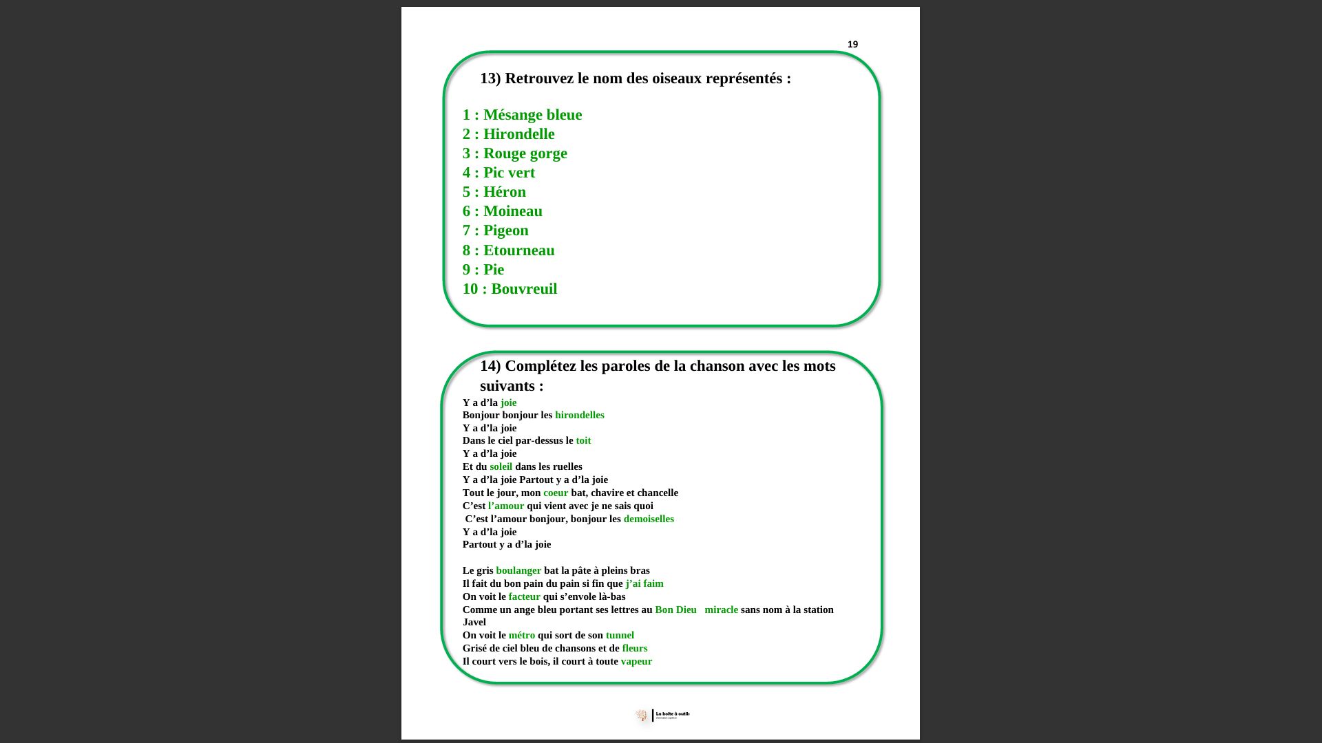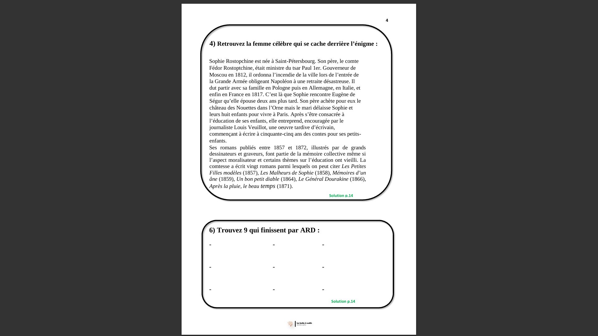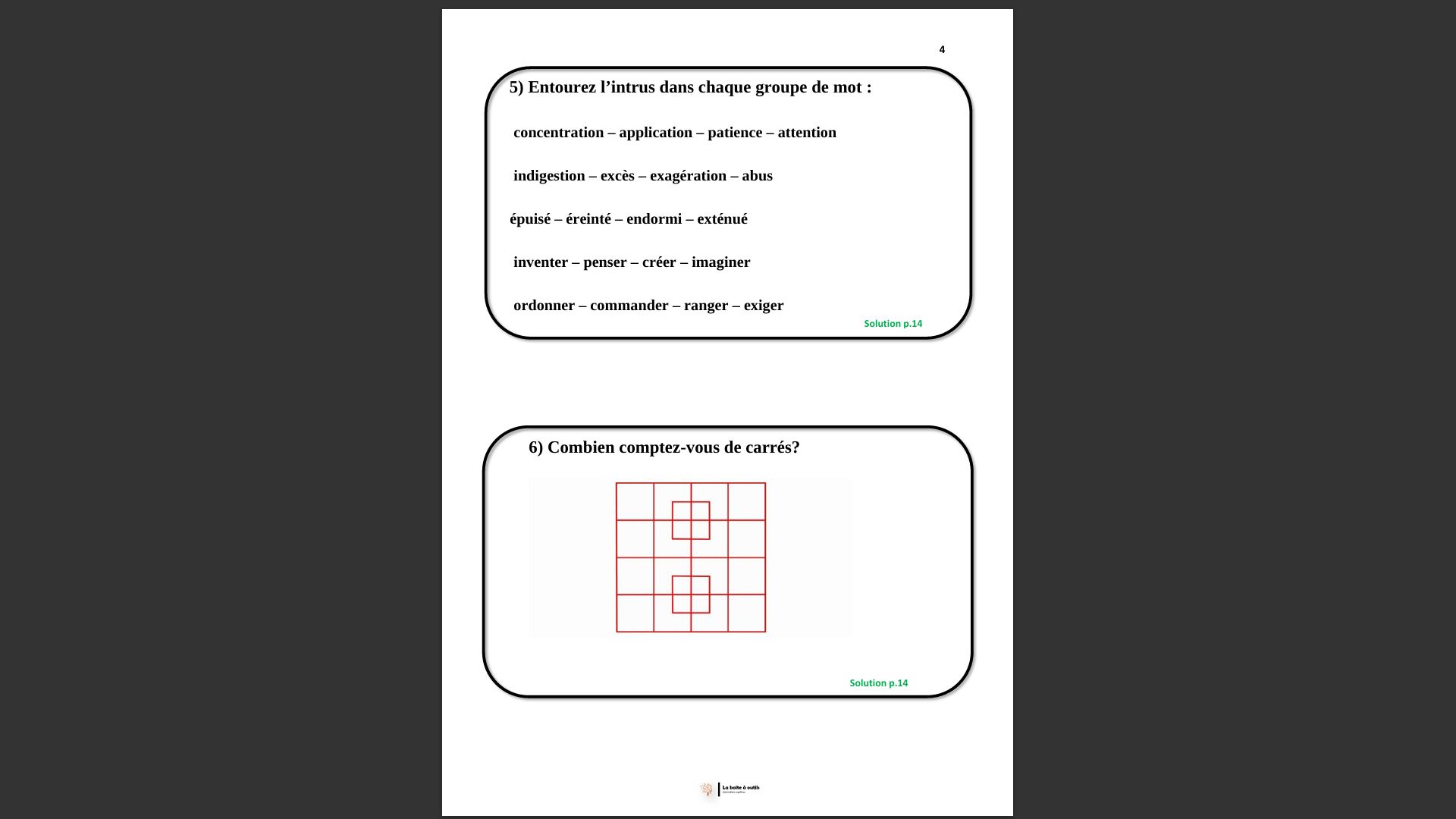 Carnet d'activités (2) ★