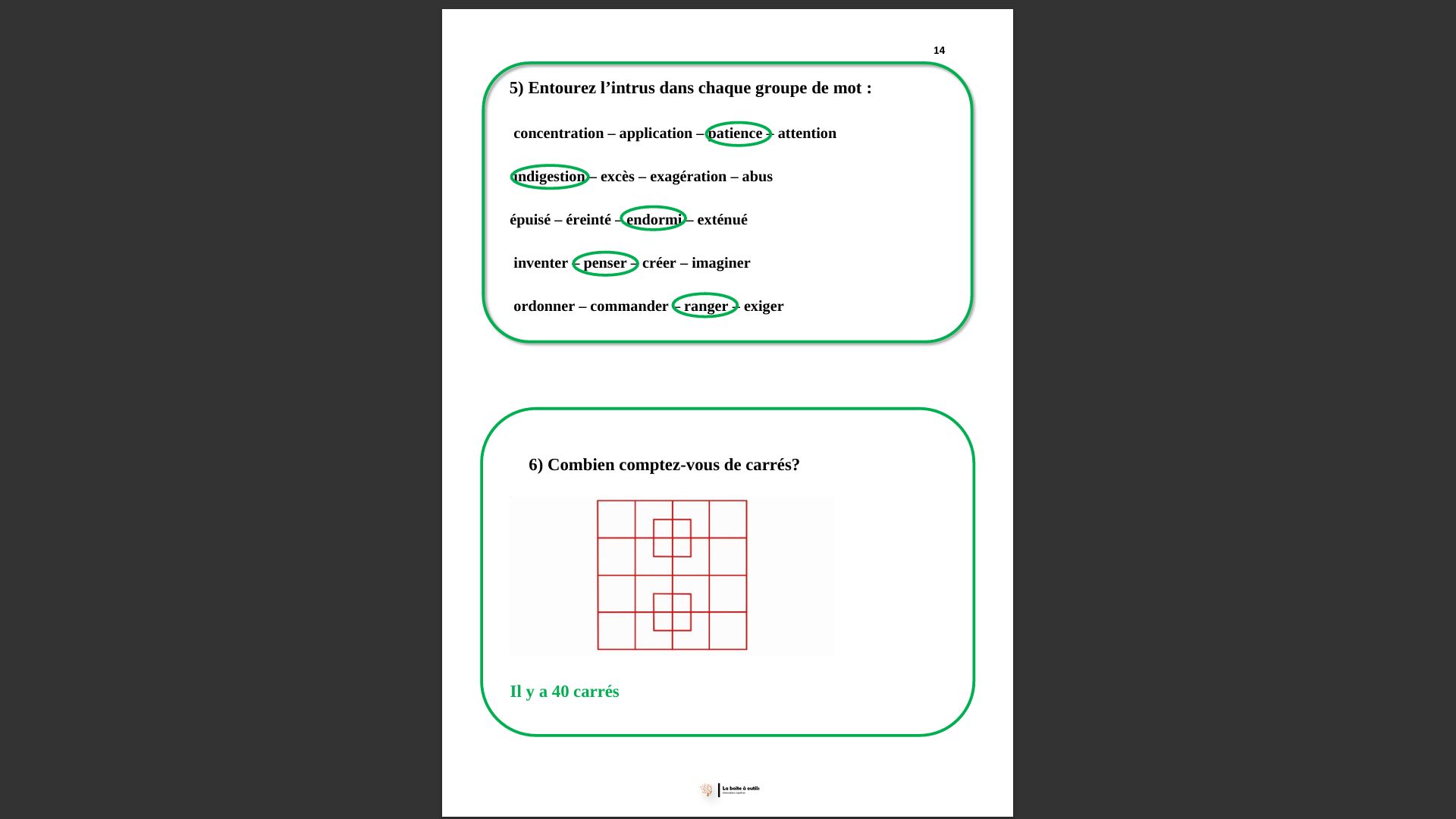 Note: 5/5 S est une habitude que j'ai donner aux résidents de mon établissement de les distribuer avant mes congés et quand je reviens on fait la correction s'est un vrai succès. De plus les proches des résidents jouent le jeux en les aidants pendant mon absence. Il m'ont même réclamés quand je repartais en congés pour avoir ce mini cahier de vacances lol.