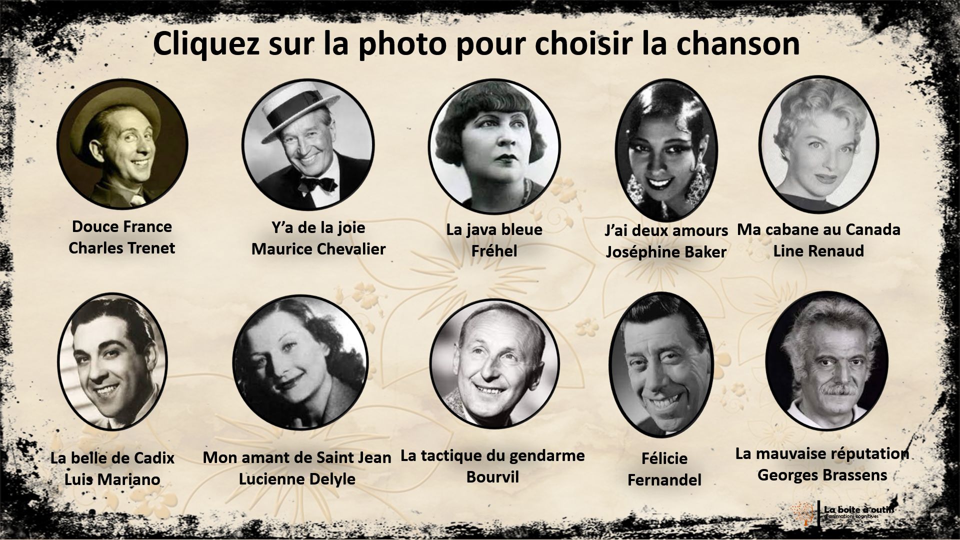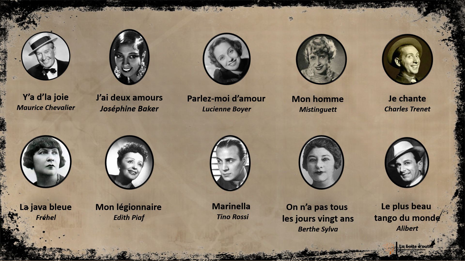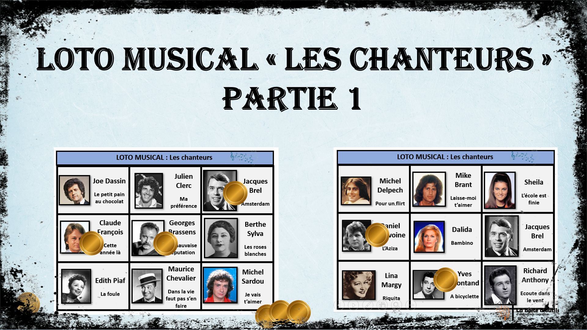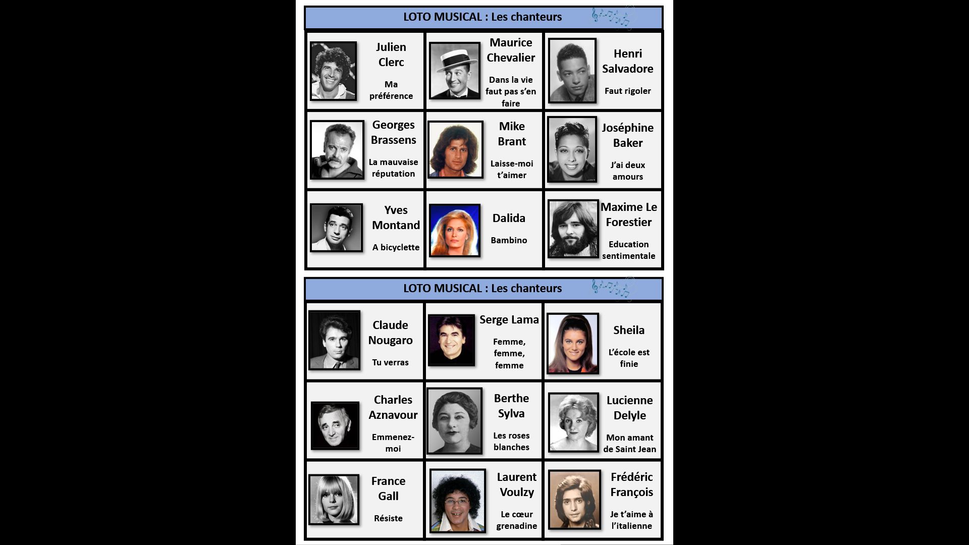 Cet atelier est un loto musical sur le thème des chanteurs.