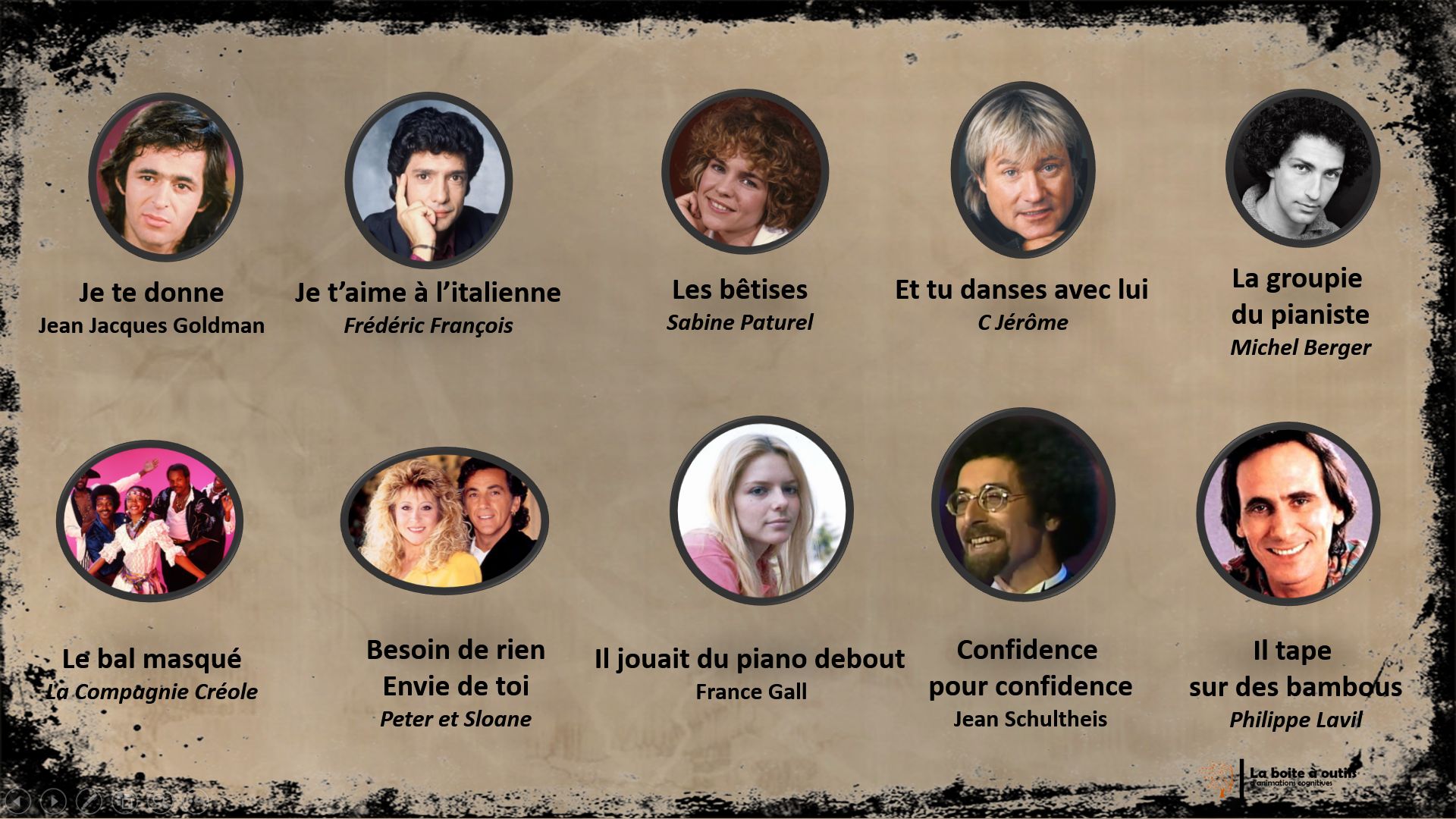 Le diaporama seul peut également servir de blind test.
