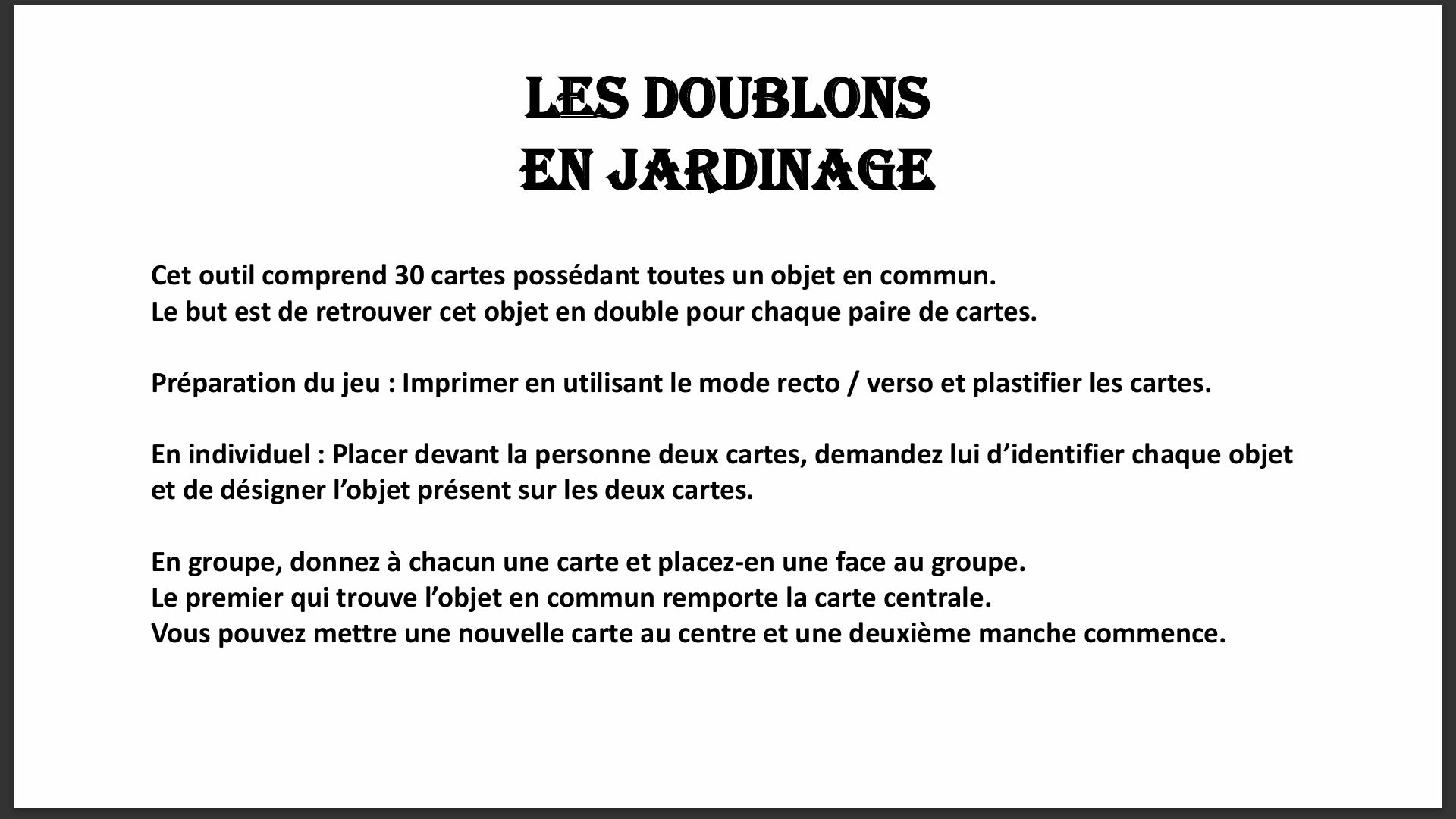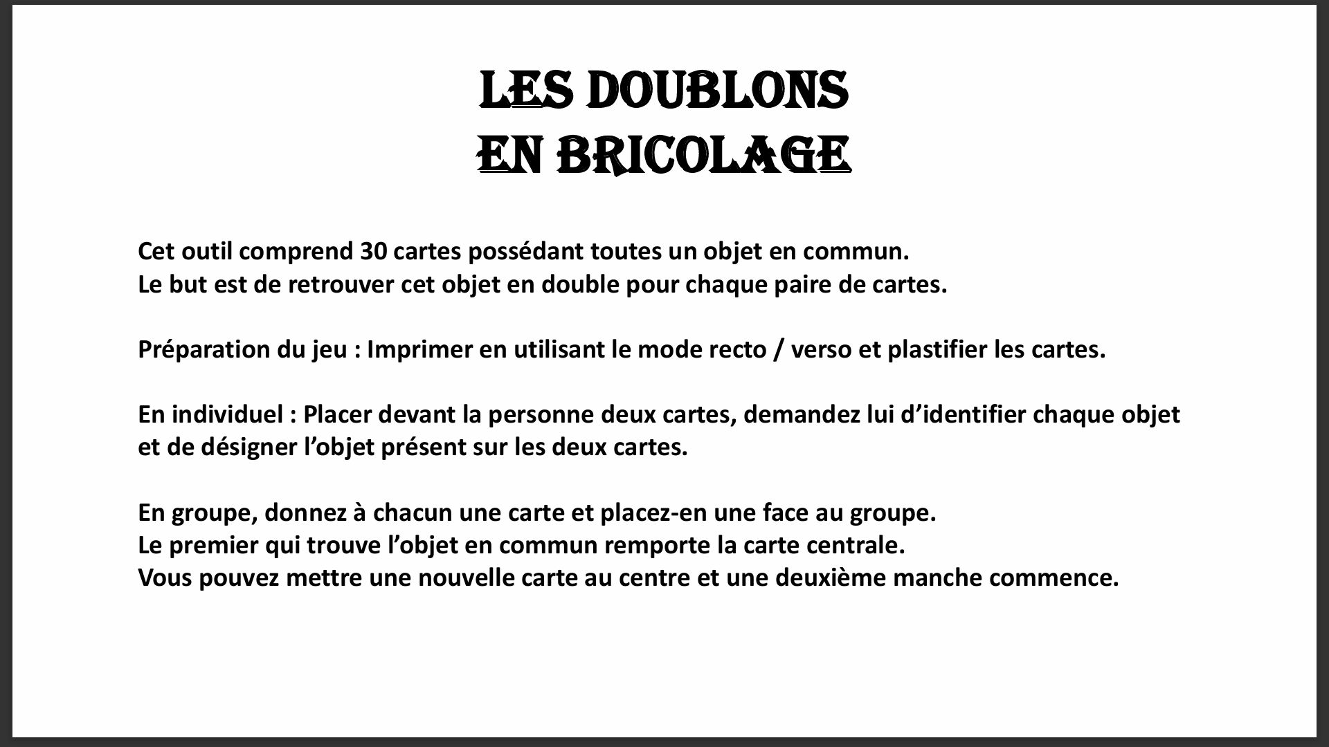 Cet outil est un jeu d’observation et de réminiscence